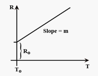 Variation of resistance of the conductor with temperature is as shown. The temperature coefficient ($\alpha$) of the conductor is -