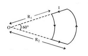 $\frac{\mu_0 i}{6} \left[ \frac{1}{R_1} - \frac{1}{R_2} \right]$