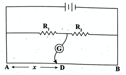In the given arrangement of a metre bridge experiment, if AD, corresponding to the null deflection of the galvanometer, is $X$, what would be its value if the radius of the wire AB is doubled?