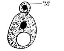 Identify the asexual reproductive structure 'M' in the following diagram: