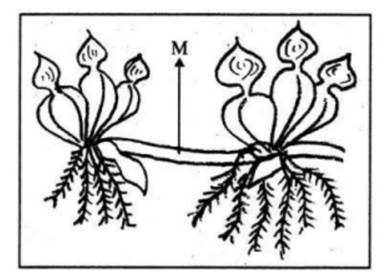 Identify the vegetative propagule 'M' in the following diagram: