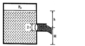 A closed water tank has a cross-sectional area $A$. It has a small hole at a depth of $h$ from the free surface of water. The radius of the hole is $r$, so that $r \ll \sqrt{\frac{A}{\pi}}$. If $P_0$ is the pressure inside the tank above the water level, and $P_{a}$ is the atmospheric pressure, the rate of flow of the water coming out of the hole is: