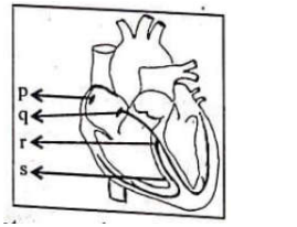 Identify the option showing the correct labeling for $p, q, r$ and $s$ with reference to the conducting system of the human heart.