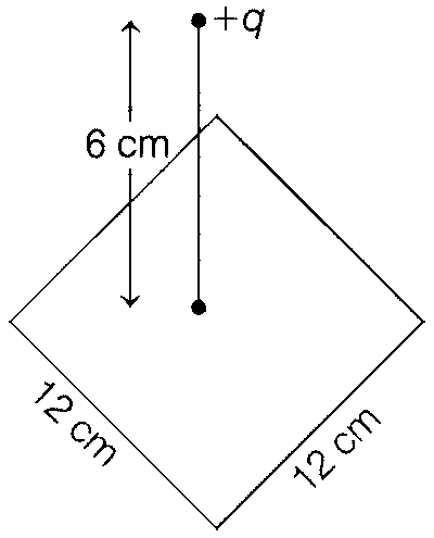 A point charge of +12$\mu$C is at a distance 6 cm vertically above the centre of a square of side 12 cm as shown in figure. The magnitude of the electric flux through the square will be __________ $\times$ 103 Nm2/C.