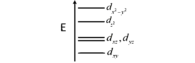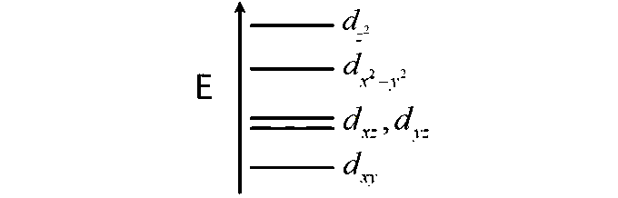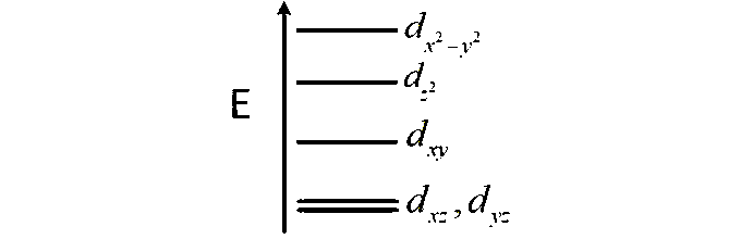 Complete removal of both the axial ligands (along the z-axis) from an octahedral complex leads to which of the following splitting patterns? (relative orbital energies not on scale).