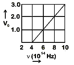 The stopping potential V0 (in volt) as a function of frequency ($\upsilon $) for a sodium emitter, is shown in the figure.