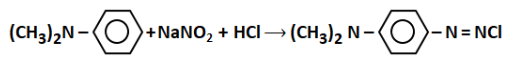 (CH3)2NH + NaNO2 + HCl $ \to $ (CH3)2N $-$ N $=$ O
