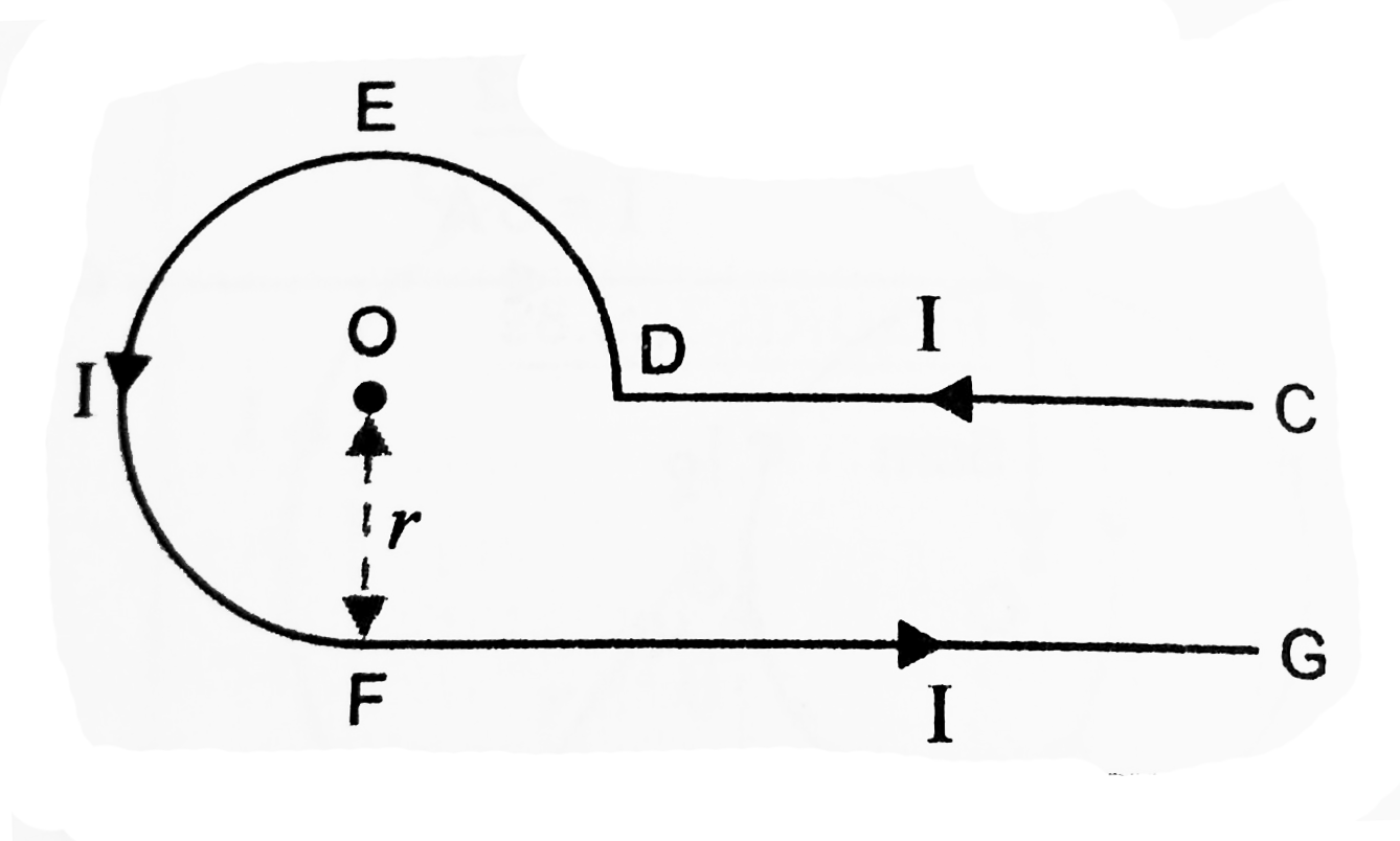 Current 'I' is flowing in a conductor shaped as shown in the figure. The radius of the curved part is r and the length of straight portion is very large. The value of the magnetic field at the centre O will be