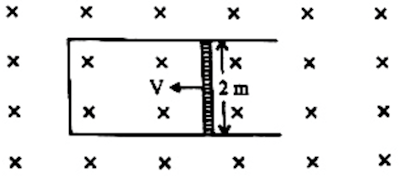 A rod of length 2 m slides with a speed of $5 \, \text{m/s}$ on a rectangular conducting frame as shown in the figure. There exists a uniform magnetic field of 0.04 T perpendicular to the plane of the figure. If the resistance of the rod is $3 \, \Omega$, then the current through the rod is?